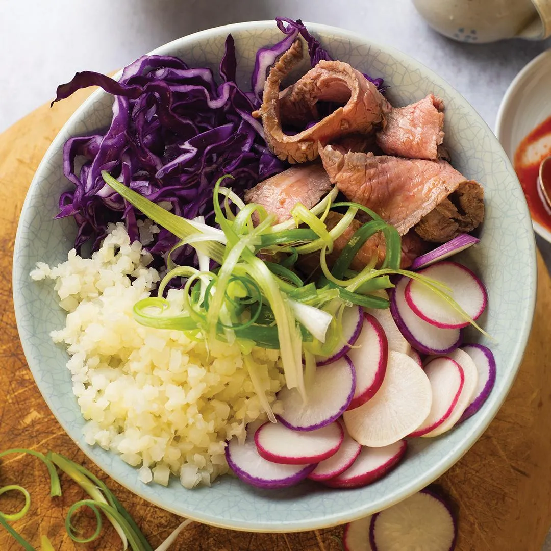 Beef, Steak, Asparagus, Bell Pepper, Onion, Zucchini, Arugula